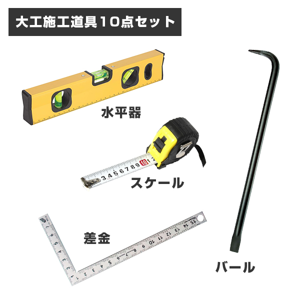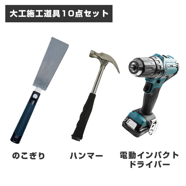 届いて直ぐに使える!大工さんセット。主に屋内作業を想定したセット内容になっております。